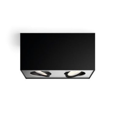 Deze moderne, kubusvormige 2-lichts zwarte opbouwspot past aan het plafond van elke kamer met een strak interieur. Dankzij de draaibare spot accentueert u gemakkelijk mooie interieurobjecten in uw kamer. De WarmGlow LED-lamp zorgt voor licht dat past bij wat u doet: hoe meer u dimt, des te warmer en gezelliger het licht. De opbouwspot werkt met de meeste dimmers en de ingebouwde LED-lamp en de metalen behuizing zorgen voor jarenlang zorgeloos licht.