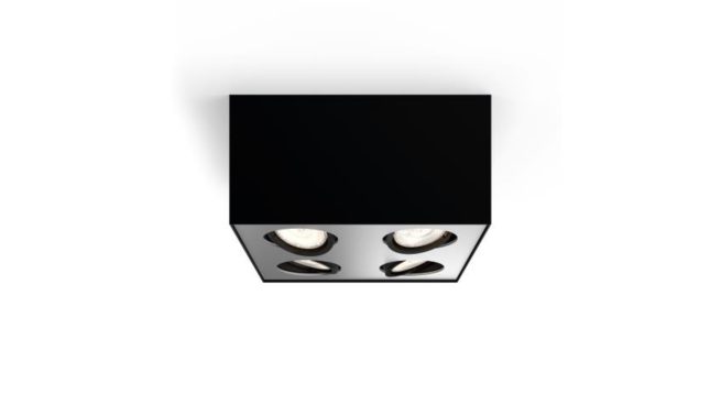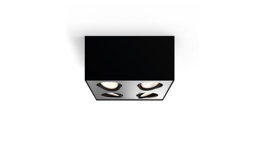 Deze moderne, kubusvormige 4-lichts zwarte opbouwspot past aan het plafond van elke kamer met een strak interieur. Dankzij de draaibare spot accentueert u gemakkelijk mooie interieurobjecten. De WarmGlow LED-lamp zorgt voor de juiste sfeer dat past bij wat u doet: hoe meer u dimt, des te warmer en gezelliger het licht. De opbouwspot werkt met de meeste dimmers en de ingebouwde LED-lamp en de metalen behuizing zorgen voor jarenlang zorgeloos licht.