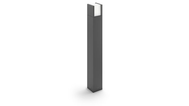 Le lampadaire LED d'extérieur Philips Arbour gris anthracite est composé d'un cube lumineux suspendu dans un support en aluminium moulé durable. Son design ingénieux projette des faisceaux de lumière blanche et froide diffuse pour éclairer vos allées et autres espaces extérieurs.