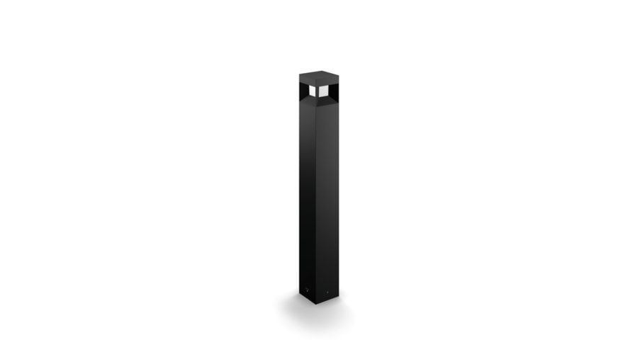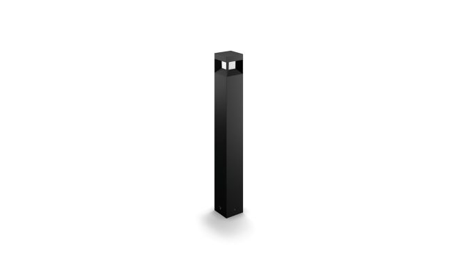 Le lampadaire LED d'extérieur Philips Parterre noir est composé d'un cube lumineux suspendu dans un support en fonte d'aluminium durable. Son design ingénieux projette des faisceaux de lumière blanc chaud diffuse pour éclairer vos allées et autres espaces extérieurs.