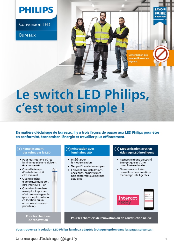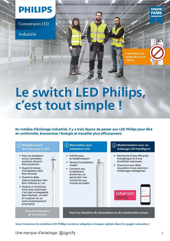 Téléchargez notre brochure et découvrez les lampes et les luminaires concernés par la réglementation, la date de leur retrait progressif et la liste complète des alternatives LED recommandées par Philips.