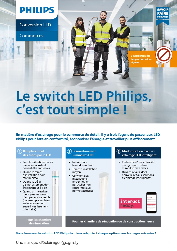 L'époque de l'éclairage conventionnel touche à sa fin ! Avec les réglementations européennes actuelles et l'augmentation des prix de l'énergie, le passage au LED est le seul choix raisonnable. En fait, il n'y aura bientôt plus d'alternative. Pour une transition sans peine, nous proposons trois options face à l'interdiction des lampes fluo et la demande des clients pour de solutions durables et économes en énergie.