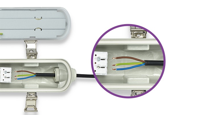 1. Installez le luminaire comme d'habitude. C'est rapide et facile grâce aux connecteurs push-in. Pas besoin d'outils.