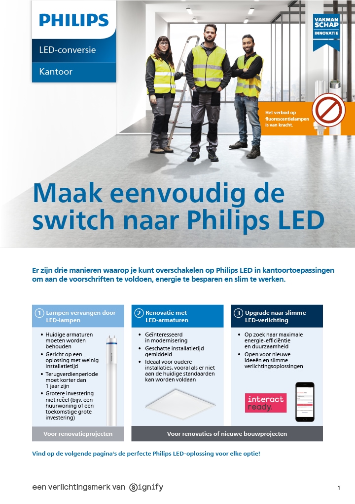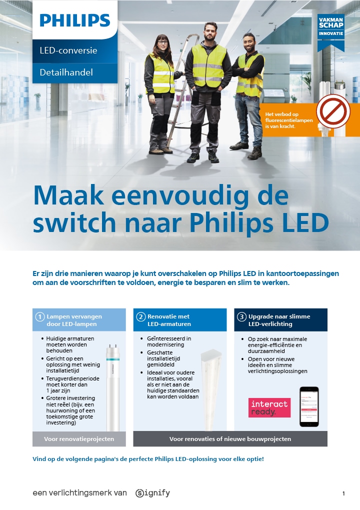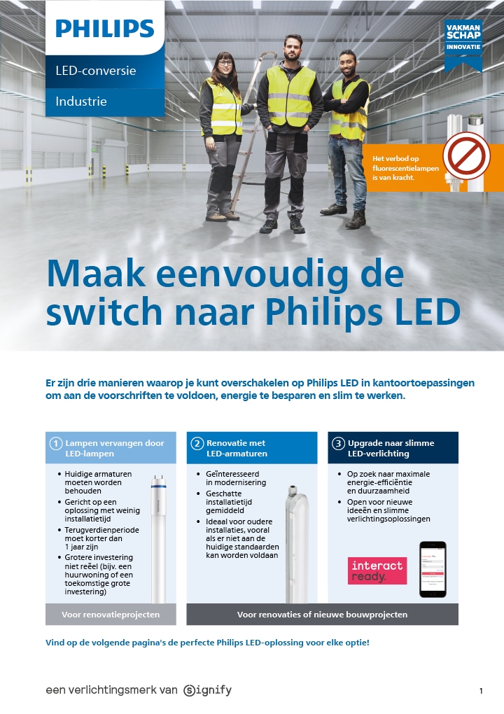 Download onze brochure en bekijk welke lampen en armaturen onder de verordeningen vallen, wanneer ze uitgefaseerd worden en het volledige overzicht van aanbevolen Philips LED alternatieven.